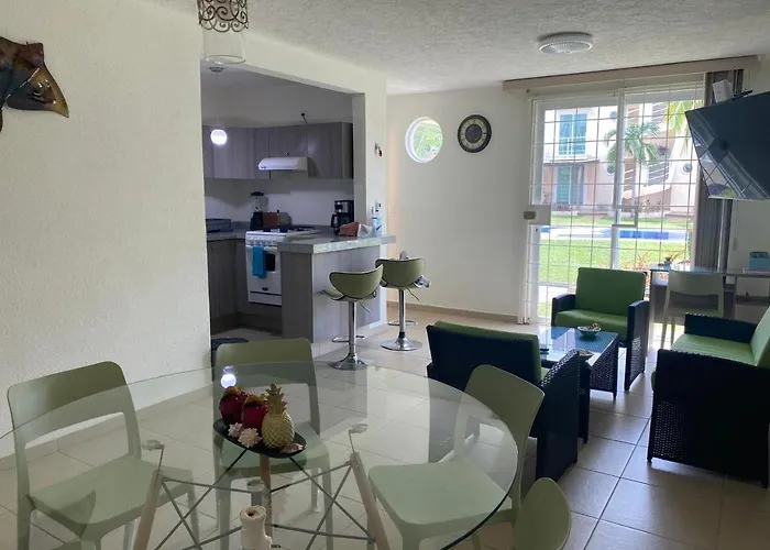 El Apartamento Caprichomarina, ubicado en el barrio Acapulco Diamante y a 3 km del Jardín Botánico de Acapulco, cuenta con seguridad las 24 horas y máquina expendedora en las instalaciones. Además, este apartamento de 63 m² garantiza la seguridad de los huéspedes mediante seguridad las 24 horas, al tiempo que ofrece vistas al jardín.